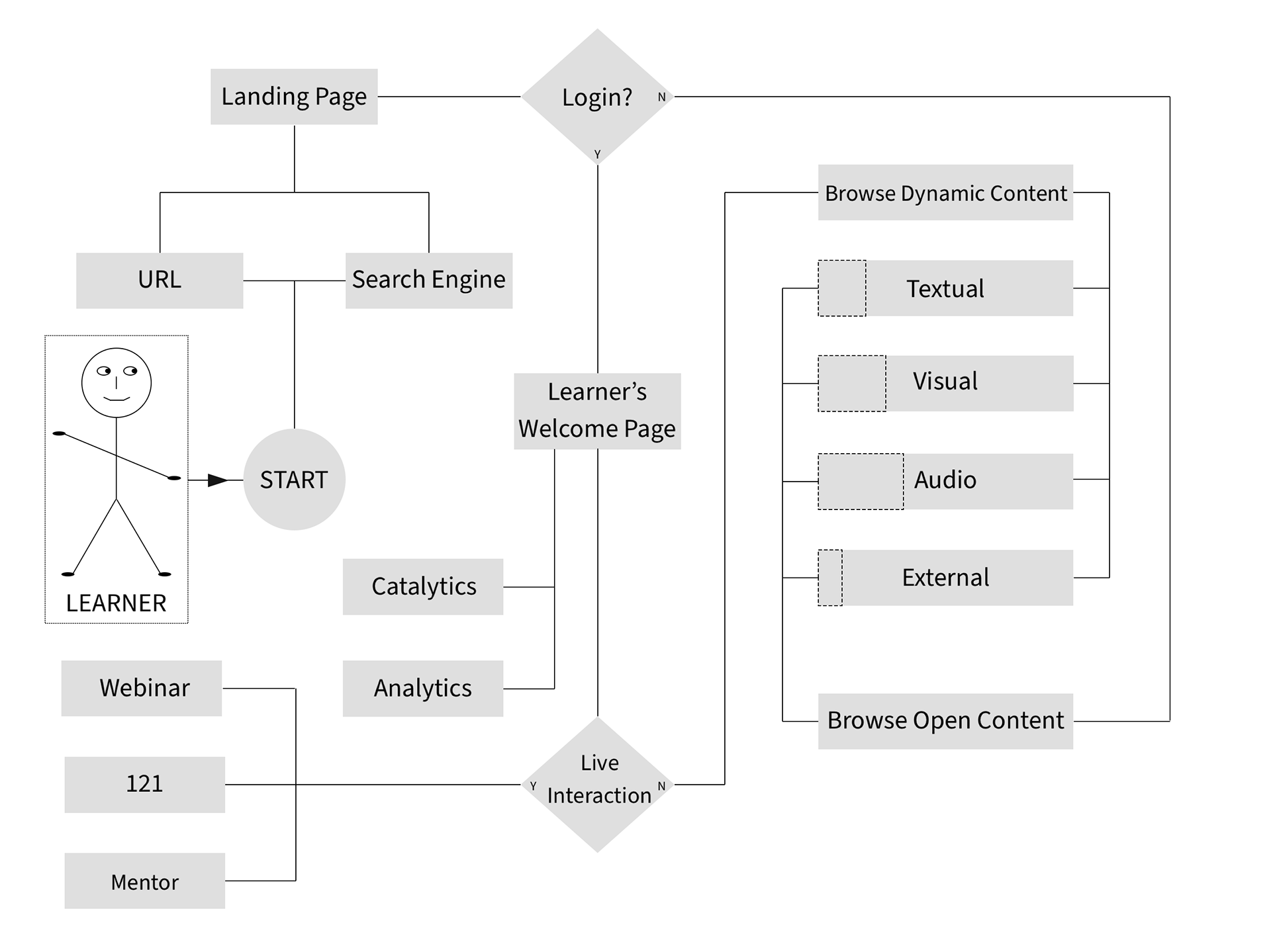 Each learner is able to access open content via the learning environment internet link or web browser. Registered learners are then able to log into additional content and services to enrich their learning experience.